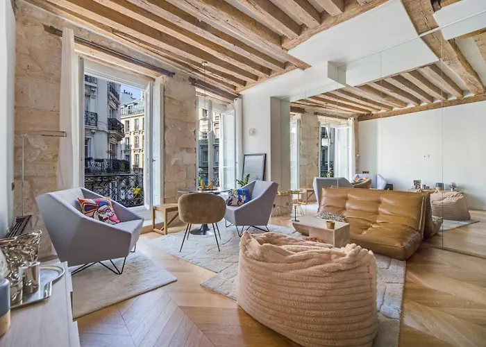 Het appartement van 50 m^2 vindt u in het centrum van Parijs. Het bevindt zich in de buurt van Musée d'Art et d'Histoire du Judaïsme, tevens is er een metrostation, Rambuteau, binnen 10 minuten lopen. Het duurt niet lang om Tuilerieën te bereiken, op 2 km verderop.